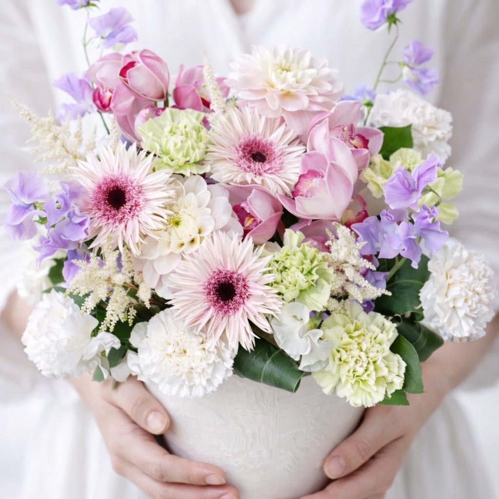 フラワーデザインコンテスト全国大会の出場経験と受賞歴を誇る専門家が手がける花アレンジメント。
